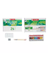 Ce set combiné complet est le set pour débutant ultime pour ceux qui cherchent à commencer leur aventure dans la gouache ! Le set contient tout ce dont vous avez besoin pour commencer : un set de gouaches de 12 tubes de 12 ml aux couleurs de base pour composer votre palette, un bloc papier gouache au format A4, 2 pinceaux, un godet mélangeur pratique, un crayon et une gomme mie de pain.