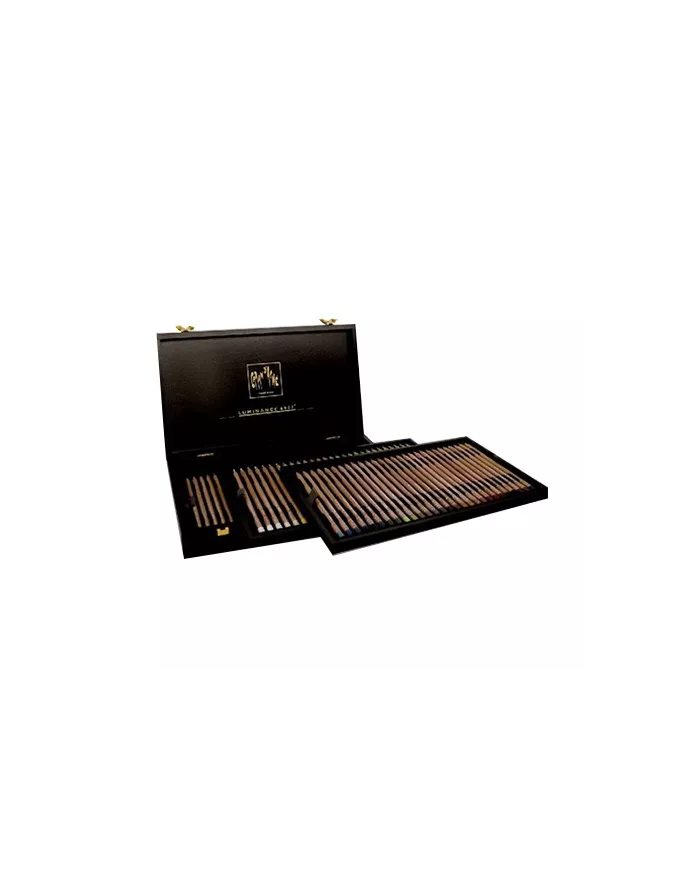 Crayon de couleur répondant aux exigences des artistes et des professionnels de la création. Mine permanente et onctueuse avec une couvrance maximale et une forte concentration pigmentaire pour des couleurs intenses et lumineuses. Tenue à la lumière conforme aux standars internationaux les plus élevés. Crayon rond, capsulé dans la couleur de la mine. Bois de cèdre du 1er choix. Techniques: mine permanente et onctueuse particulièrement recommandée pour réaliser des mélanges et des dégradés, pour travailler des fondus ainsi que pour ombrer et brunir en utilisant un crayon blanc. Coffret de 76 crayons luminance.