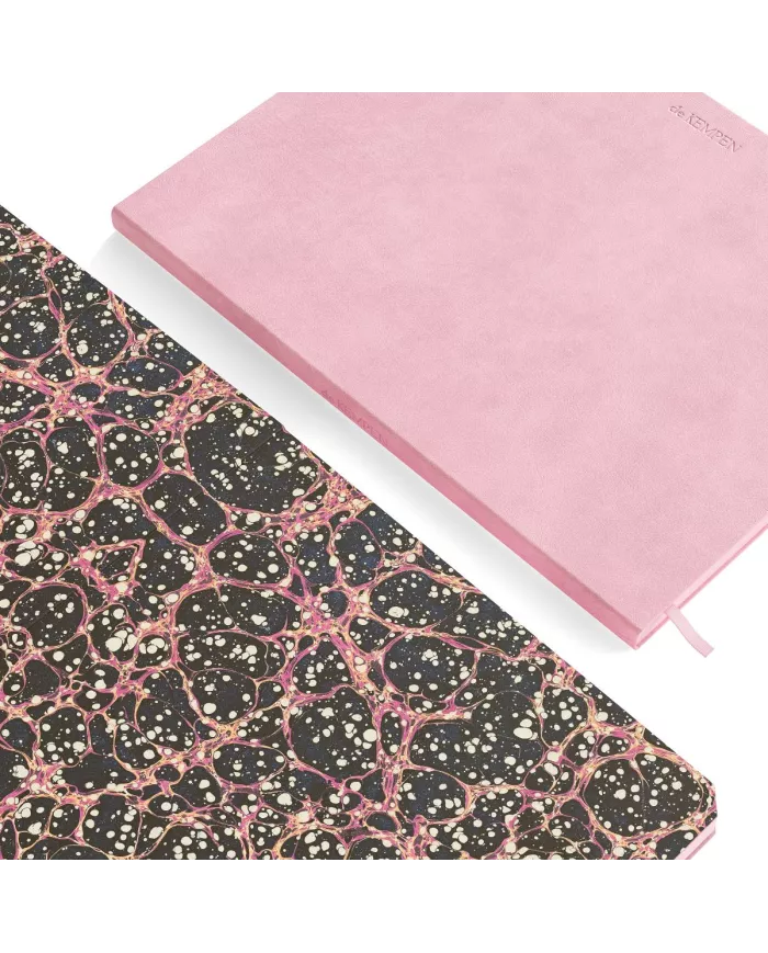 Le carnet de KEMPEN se distingue par sa reliure spéciale, qui maintient le livre complètement à plat lorsqu'il est ouvert. Il est donc idéal non seulement pour les droitiers, mais aussi pour les gauchers qui ont souvent du mal à utiliser les cahiers traditionnels. Le carnet est rempli d'un papier certifié FSC de 90gr/m2, très absorbant, qui évite les taches et permet d'écrire avec un stylo plume. De plus, le papier de couleur crème est doux pour les yeux, ce qui contribue à une expérience d'écriture confortable. Chaque détail a été soigneusement étudié pour créer un carnet non seulement fonctionnel, mais aussi agréable à utiliser, quel que soit votre style d'écriture. Un ruban de lecture pratique et coloré apporte la touche finale à ce carnet.