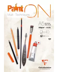 Assortiment de 5 papiers Paint'ON 100% cellulose, multi-technique par excellence. Idéal pour découvrir la gamme et choisir le papier qui vous conviendra le mieux. Adapté aux techniques sèches (crayon, stylo graph, feutre) et aux techniques humides (encre de Chine, gouache, acrylique). Excellente capacité d'absorption et repentir possible