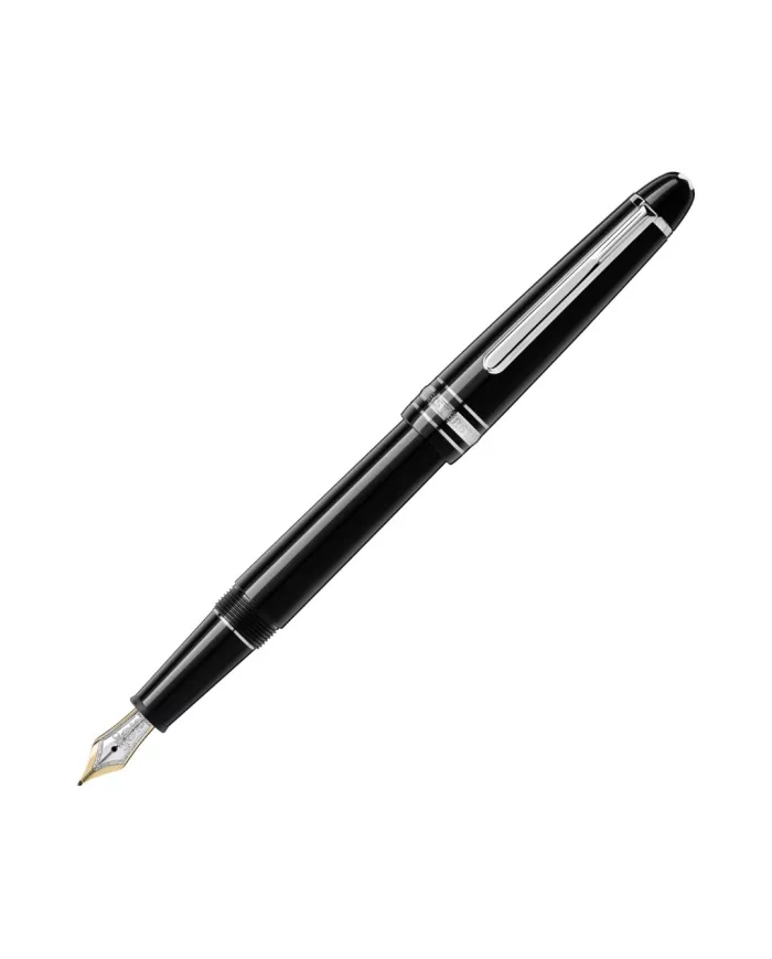 Le stylo plume Meisterstück Classique est une icône de design. Le capuchon et le corps sont fabriqués en résine précieuse noire incrustée de l’emblème blanc Montblanc. Trois anneaux platinés gravés du nom Montblanc, une agrafe platinée et une plume en or fabriquée à la main soulignent le design intemporel de ce stylo plume iconique.